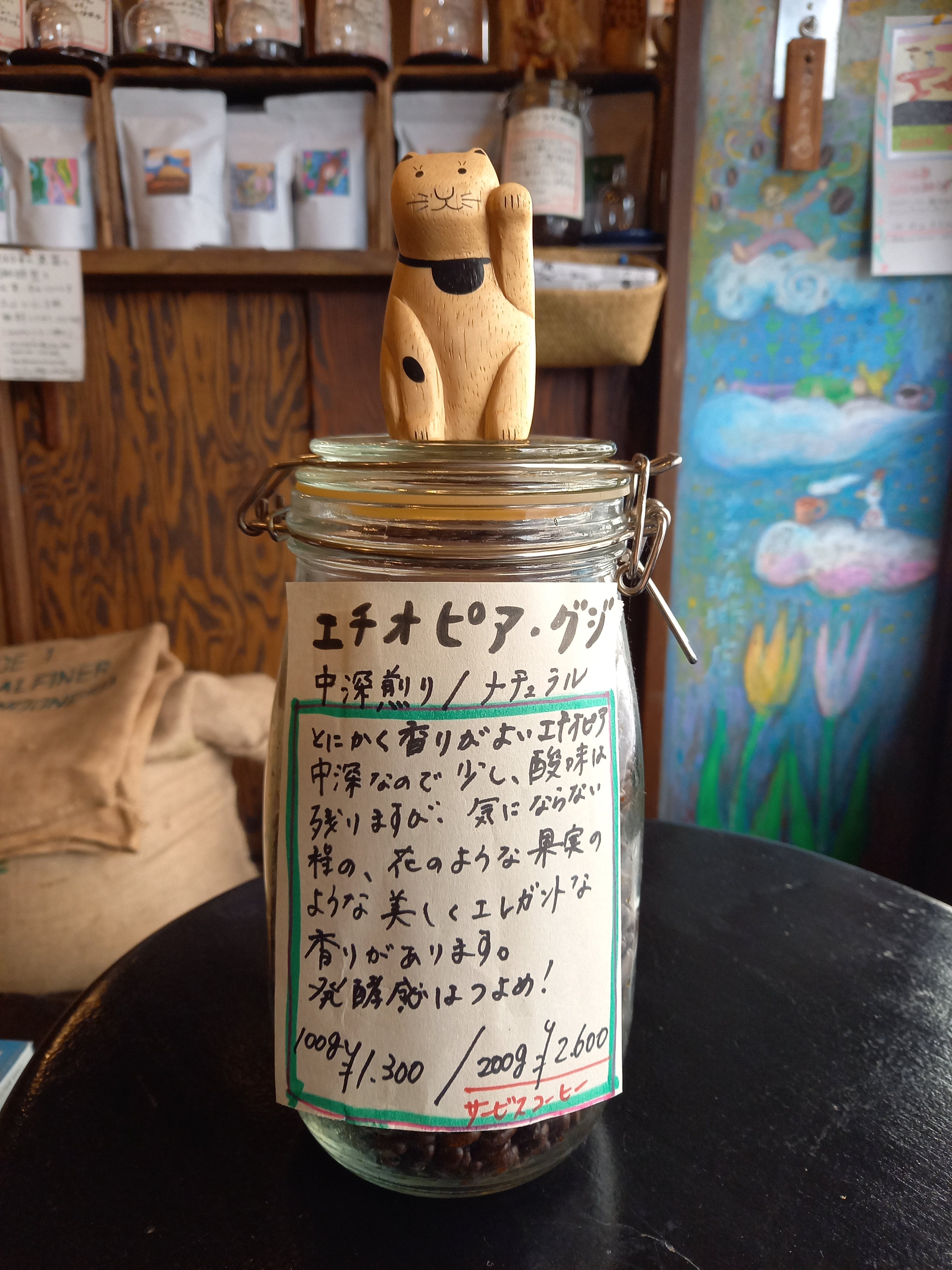 ※写真の珈琲袋は店頭用の珈琲袋です。オンラインストアーでは、発送用の平袋でお送り致します。到着しましたらお手持ちのキャニスター缶などに入れ替えるなどし、光、湿気、水気を避け、保存をお願い致します。